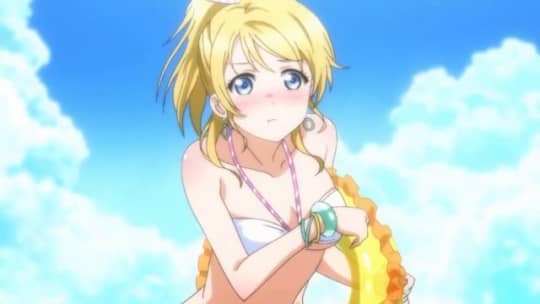 個人的に「恥じらいを見せる女子」というのが大好きであるので、「ビキニ姿」で顔を赤める「絢瀬絵里」は、最上級に「キュート」であると私は思うわけです!
