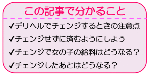 そしてチェンジされる方もする方もどちらも嫌な気持ちになるので、チェンジをしないためにも経験者の私が詳しく解説していきます!