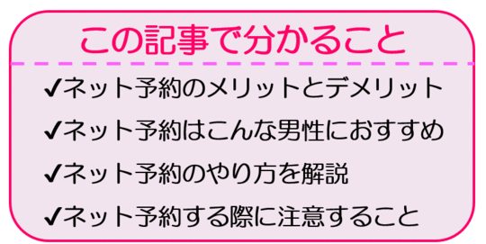 では、今からネット予約の方法やメリット・デメリットについて詳しく紹介していきます。