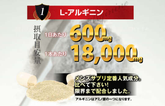 成分 | L-アルギニン、L-シトルリン、トンカットアリ、亜鉛、マカ、バイオペリン、コブラ、トナカイ角、ニンニク、オーガニックプロポリス、ザクロポリフェノール他 |
