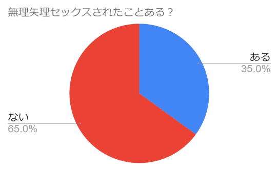ご覧のとおり、35%の女性が「無理やりされたことがある」と答えています。