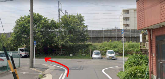すると、駅を後にしたはずなのに、線路沿いのT字路に差し掛かります。