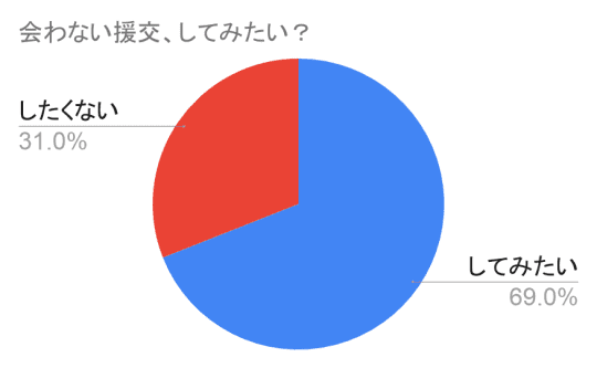 こちらの画像は、Twitterにて集まってくれた20~40代の男性50人に「会わない援交、してみたい?」とアンケートを取ったときの結果をグラフに表したものです。
