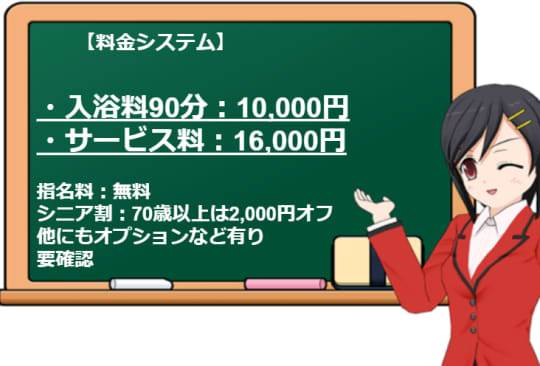 上流夫人は、入浴料が90分で、サービス料が16,000円になります。