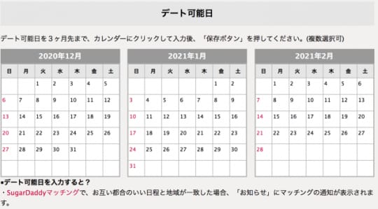 彼女と出会うまでに既に1年ほどシュガーダディを使っていた私は、いつもの通りその月の予定のない日をカレンダーに入力していました。