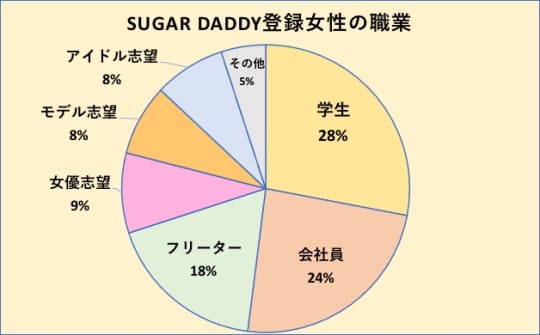 「女性(シュガーベイビー)が、経済的に援助してくれる男性(シュガーダディ)を見つける活動、及びそのシュガーダディから金銭的な援助を受けること」