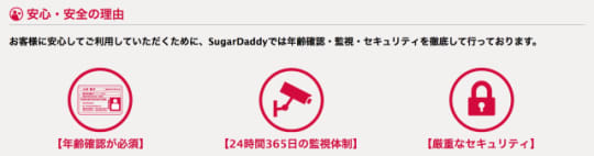 その他にも安心してシュガーダディを使う為の、3つのセキュリティを徹底しています。