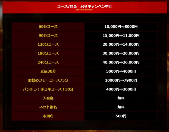 ゆっくりプレイを堪能できる90分コースが11,000円!