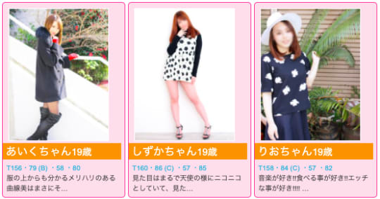 ほわんと可愛い巨乳女子から、キレカワスレンダーギャルまでいろいろなタイプの女の子が揃っているので、お気に入りがきっと見つかる!