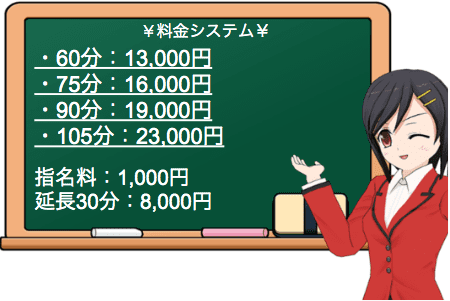 肝心の料金システムになりますが、60分13,000円から遊べます。他に比べてとっても低価格ですね。値段はリーズナブルでも経験豊富な女性たちなので、価格の割に満足度が高いと思いますよ。