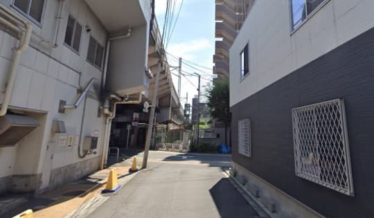 こちら右側のソープランドの看板がある建物が、目的地「吉祥寺 角えび」です。