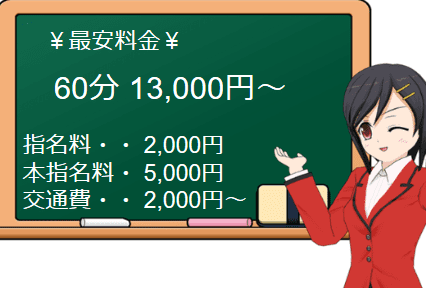 料金は通常60分13,000円で、「アロマ回春」「洗体回春」「スクラブ回春」と三種類のコースがあります。