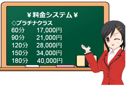 上記料金表は、プラチナクラス(本指名率30%以上の奥様)の料金となります。