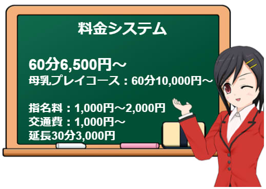 他店ではあまり見たことのない母乳コースなるものもありますが、こちらも60分10,000円~とリーズナブルです。