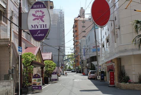 左上の「HOTEL MYTH Luna」の看板が目印です。