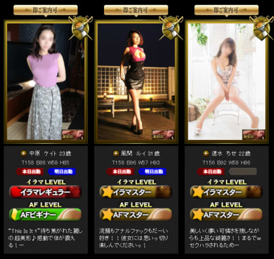 M気質変態美少女・美女が160名以上も在籍する「イラマチーオ新宿店」、こちらの大きな特徴はプロフのモザイクが薄い、又はモザイクが無い子が多く、自分のイメージピッタリの女の子が訪れると好評です。