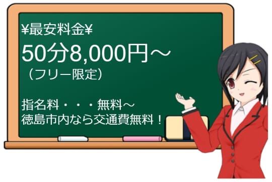 最安値で遊べるお試しコースは、フリーで利用する場合に限ります。お試しコースのみ、徳島市内でも交通費+1,000円が発生してしまうのでご注意ください。