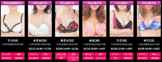 おっぱいの超でっかいグラマラスボディの持ち主、すらっとモデル級スレンダー美女、ロリロリな童顔美少女まで、それはそれはたくさんの女の子が在籍しており、必ずあなたのお好みの女の子が見つかること間違いなしです!