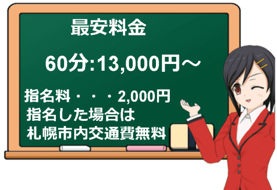 料金設定は高すぎず安過ぎずといったところですね。指名料は一律2,000です。指名した場合のみ、札幌市内は交通費はかかりません。