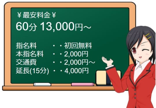 コース料金が60分で13,000円は安いと思いますし、初回利用に限り指名料が無料というところも良いですね。交通費が無料なエリアなら15,000円ちょうどの値段になるので、初めてでも遊びやすい料金だと思いました。