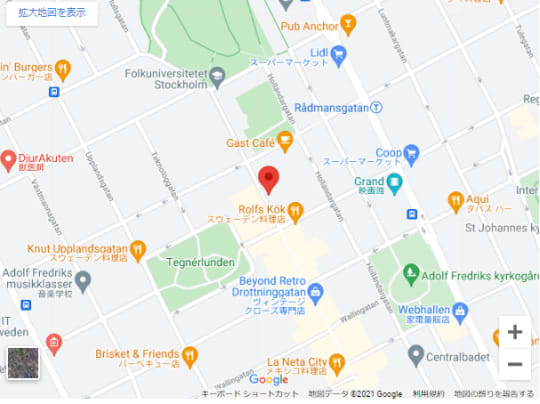 特に市内を走っている「17・18・19番」の地下鉄へと乗車し、最寄り駅の「Rådmansgatan」で下車すると、徒歩10分程で到着します。