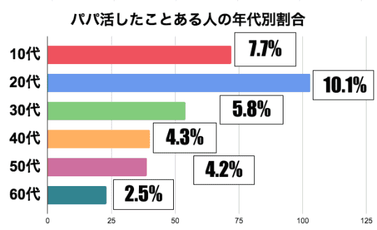ただこの結果、10〜60代へのアンケート調査の結果なので、結構年齢層に幅が広いんですよね。パパ活をする年代と言ったら、メインは20代、あとは10代と30代前半の方々ではないでしょうか?