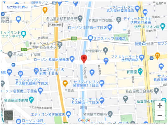 納屋橋というのは、名古屋のメインストリートのひとつである広小路通りにある橋で、名古屋駅の桜通口(新幹線口ではない側)から徒歩15分程度のところにあります。