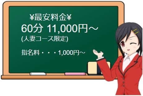 上記の最安料金は人妻コース限定で、通常コースの最安料金は60分15,000円~です。