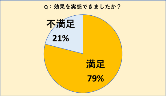 公式サイトのように98%ととまではいきませんでしたが、なんと79%の方が効果を実感したと回答!十分すぎるほどに良い結果だと思います!
