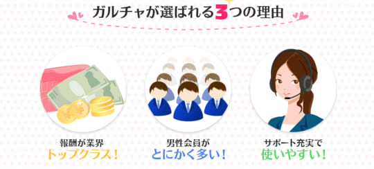 ガールズチャット通称"ガルチャ"は女の子がチャットレディとして登録して、男性がポイントを買って女の子を通話やメールを楽しむサービスです。