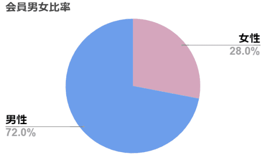 男女比率は72:28で男性会員が圧倒的に多く、出会えるか不安になってしまう方もいるでしょう。