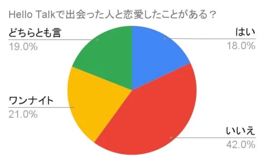 では実際にHello Talkでどれぐらい出会いが期待できるのか、ネット上で日本人の男女約100名からアンケートを取れたのでご紹介します。