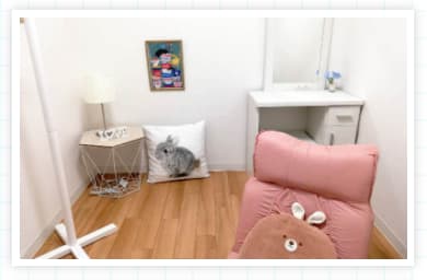 まるで自宅にいるかのようなかわいらしいお部屋で、安心してお仕事ができますよ。