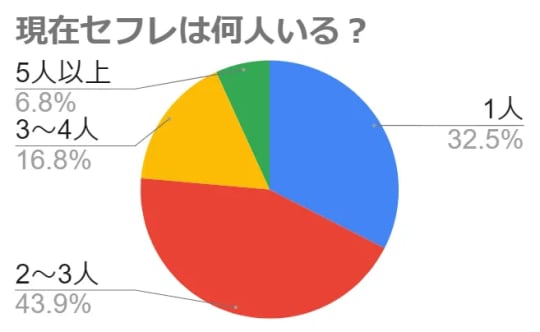 セフレの人数について調査したところ、2~3人という女性が最も多い結果になりました。持て余した性欲を複数のセフレで発散しているのは、僕たち男に限ったことではないんです!