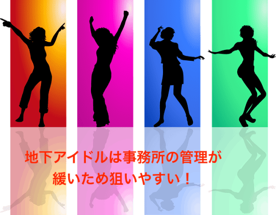 事務所の管理が緩かったり、そもそも事務所に所属していない地下アイドルは、芸能人としての自覚が、まだまだ芽生えていないと言えるかもしれません。