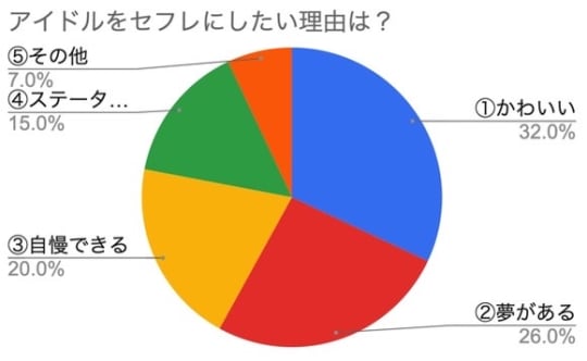 その他にも「②夢がある」「③自慢できる」「④ステータスが上がる」など、アイドルはステータスが高く、だからこそ!ということが垣間見えます。