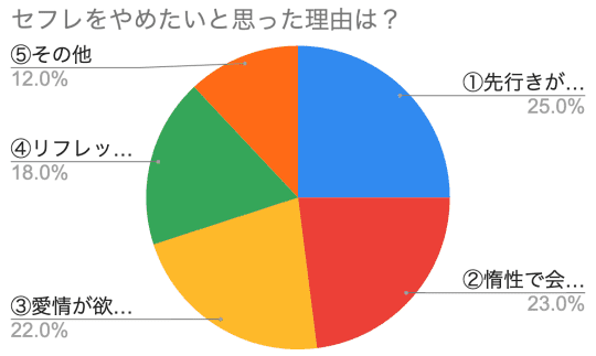 セフレをやめたい理由で一番多かったものは「①先行きが見えない」でした。