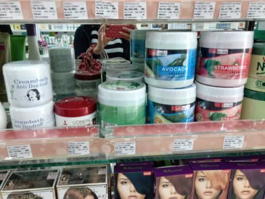 上の写真にアボガドが加わり、ジンセン・グリーンティ・アロエ・キャンドルナッツの5種類のクリームがあります。お値段は1個あたり日本円にして250g200円程。しかし、日本でネット購入すると約10倍のお値段!個人的にインドネシアのばらまきお土産で一番におすすめしたいコスメアイテムです!