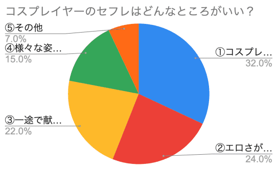 結果は「①コスプレ姿でセックス」が一番でしたが、これは予想通りではないでしょうか。