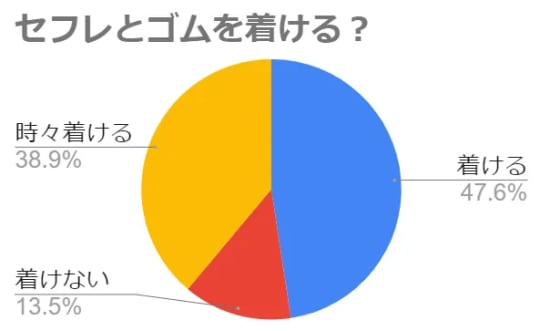 グラフから、セフレとゴムなしでセックスしたことがある男性は半数以上いることがわかります。やはり男にとって、ゴムなしの魅力は計り知れません。