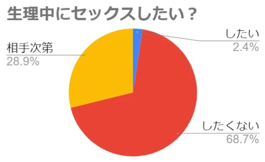 アンケート結果をグラフにまとめました。生理中にセックスしたくない女性が多いものの、相手次第という女性もいますね。