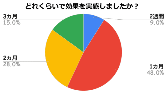 次に、効果を実感するまでにどれくらいの期間がかかったのかを聞いてみました。