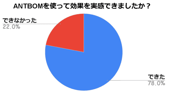 ANTBOMを飲んでいる人300人に「効果が実感できたか」をネット上でアンケートを取ってみました。一番気になるところですよね。