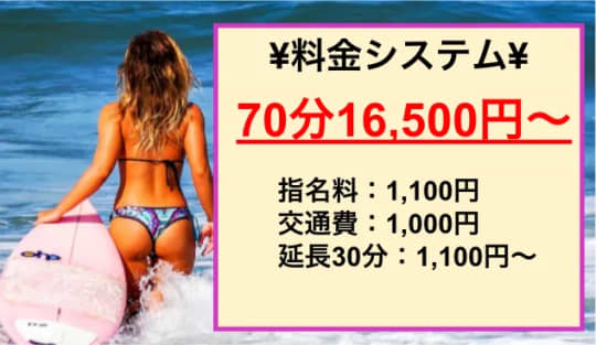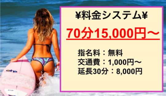 70分15,000円から!比較的長い時間を安く遊べるのがいいですね。指名料も無料なのが結構嬉しい。交通費は1,000円からで、こちらも良心的だぞ。