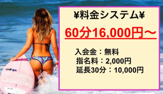 システムは、60分16,000円からで、平均的な価格だと思います。入会金は無料!指名料は2,000円かかりますが、それだけ質が高いということですね。納得です!