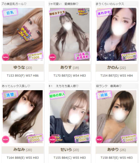 口コミにあるように、基本料金激安すぎて驚き...個別にプレミアム料金が1,000円~5,000円なんだけど、1000円でもめちゃめちゃ可愛い娘がいる。