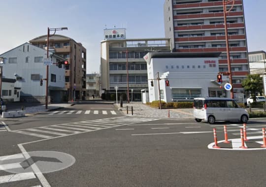 まずは、JR岐阜駅中央南口を出てすぐに見えるバス乗り場を目印に、交差点まで歩きましょう。