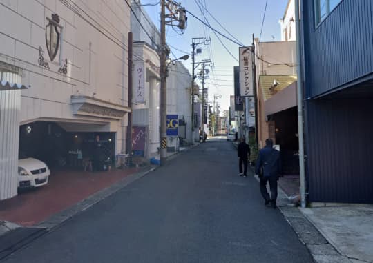 路地に入ってすぐ、左手の3件目のビルが”レジーナ”の建物になります。ここまでおよそ5分程度で歩いてこれます。いよいよその時がやってきました!楽しんで〜。