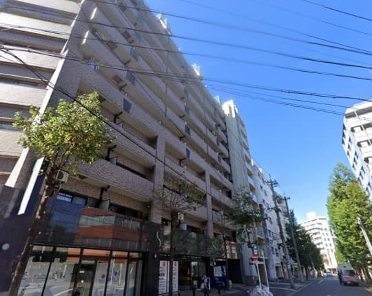 道なりに歩くと、「アロマエスト」が入ったマンションが見えてきました。