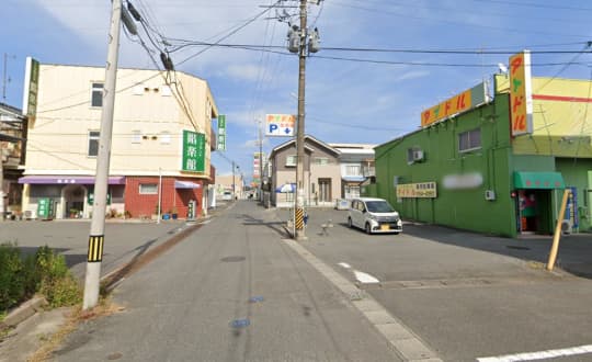 左Tの字を曲がって真っすぐ進み、1本目の十字路を過ぎると右側に見えてきます。